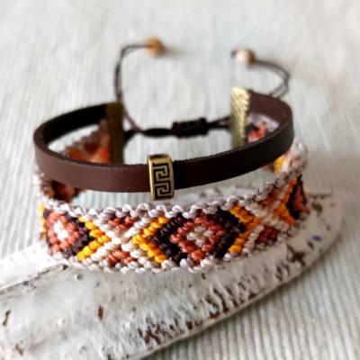 Makramee Armbänder in Kombination mit Leder